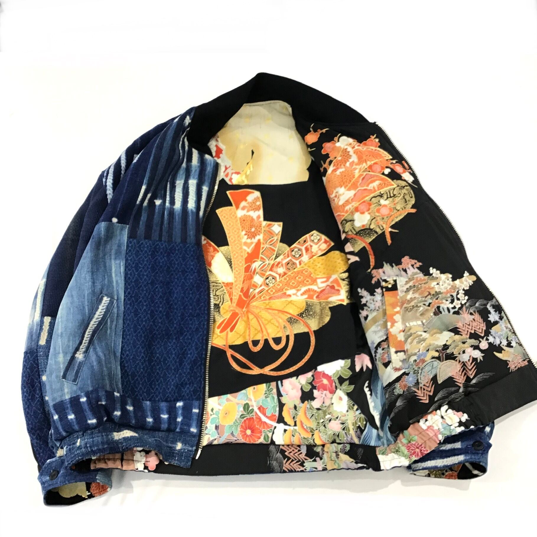 【bomber15】再構築リバーシブル中綿ボンバー KIMONO × indigo MIX BOMBER JACKET