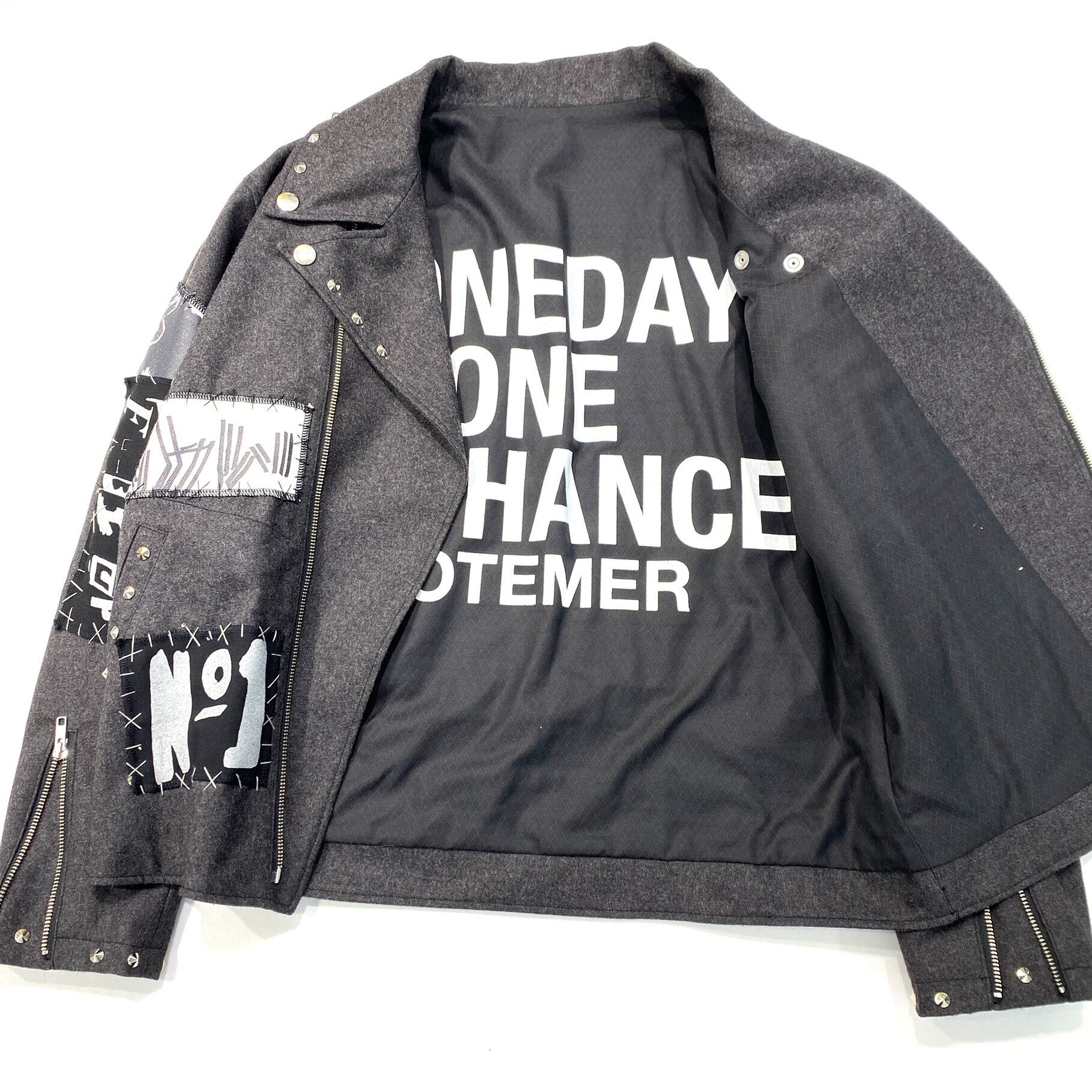 オリジナルのプリントと手縫いパッチ、スタッズでCOTEMER らしいリメイクの1点。