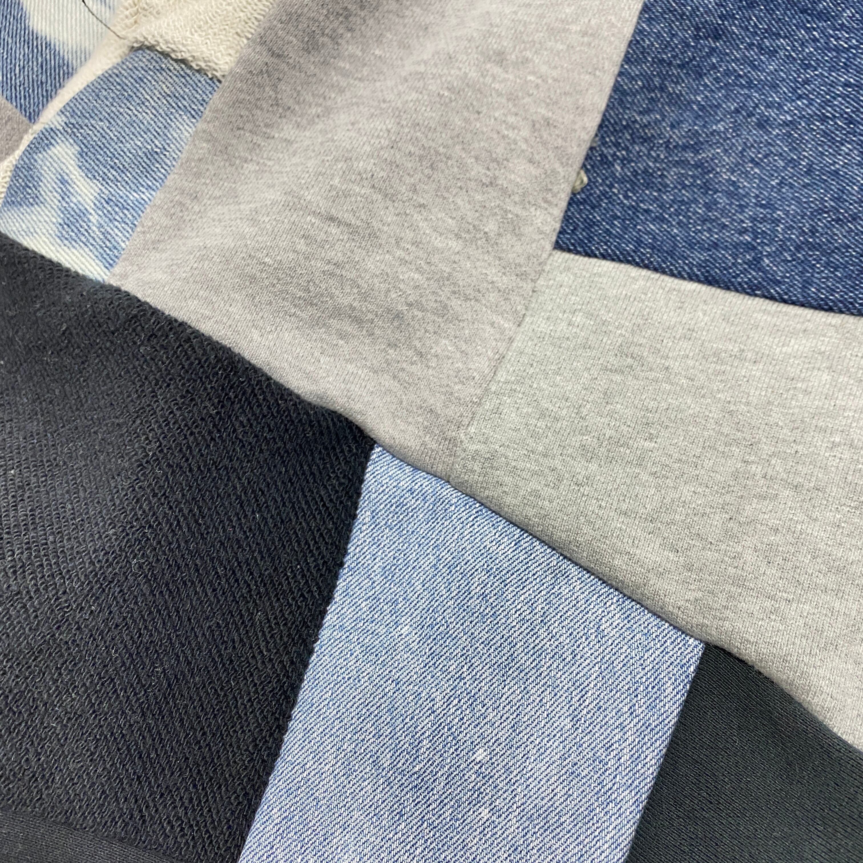 デニムを入れた裏毛フードパーカー。