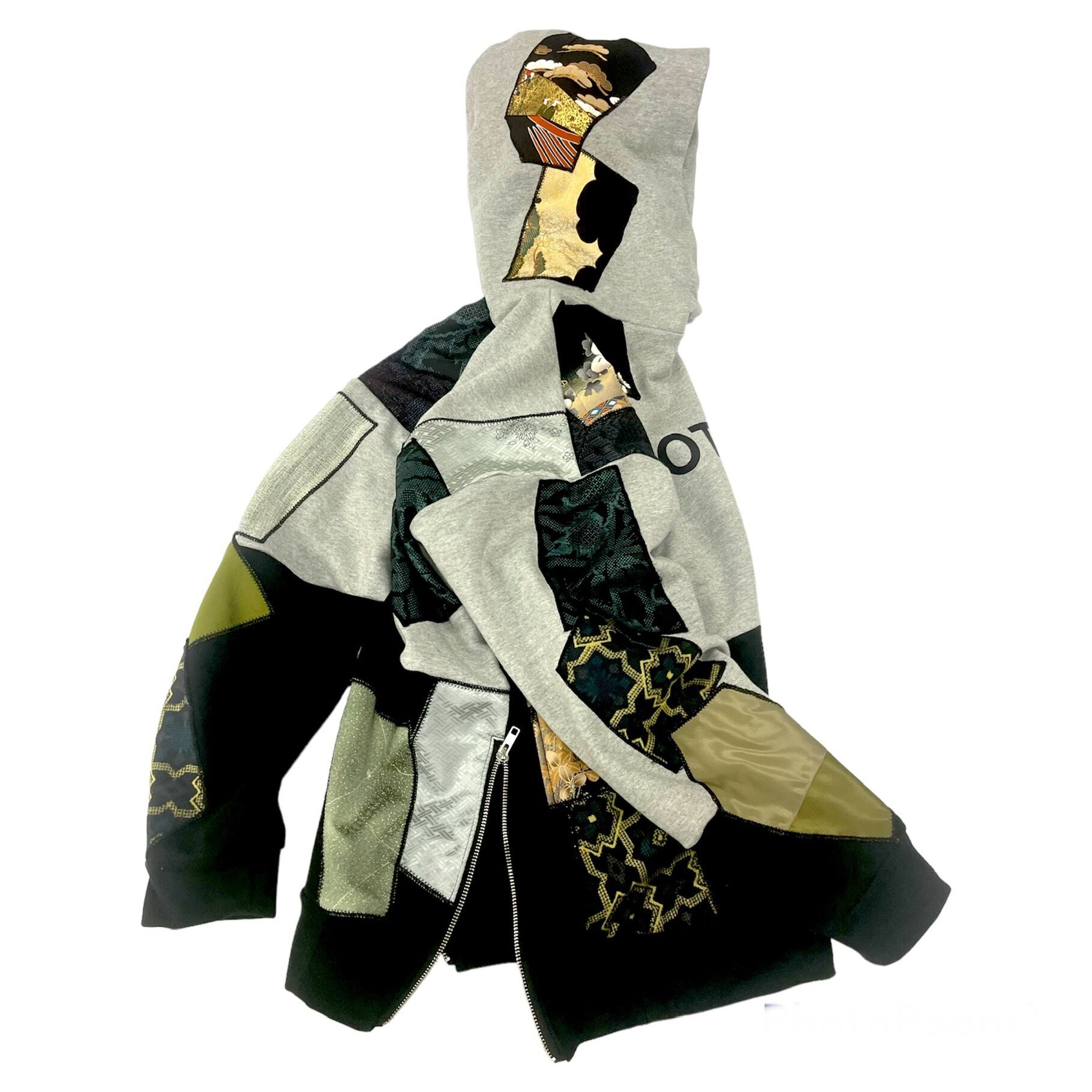【hoodi38】 Remake Hoodie black・gray × kimono