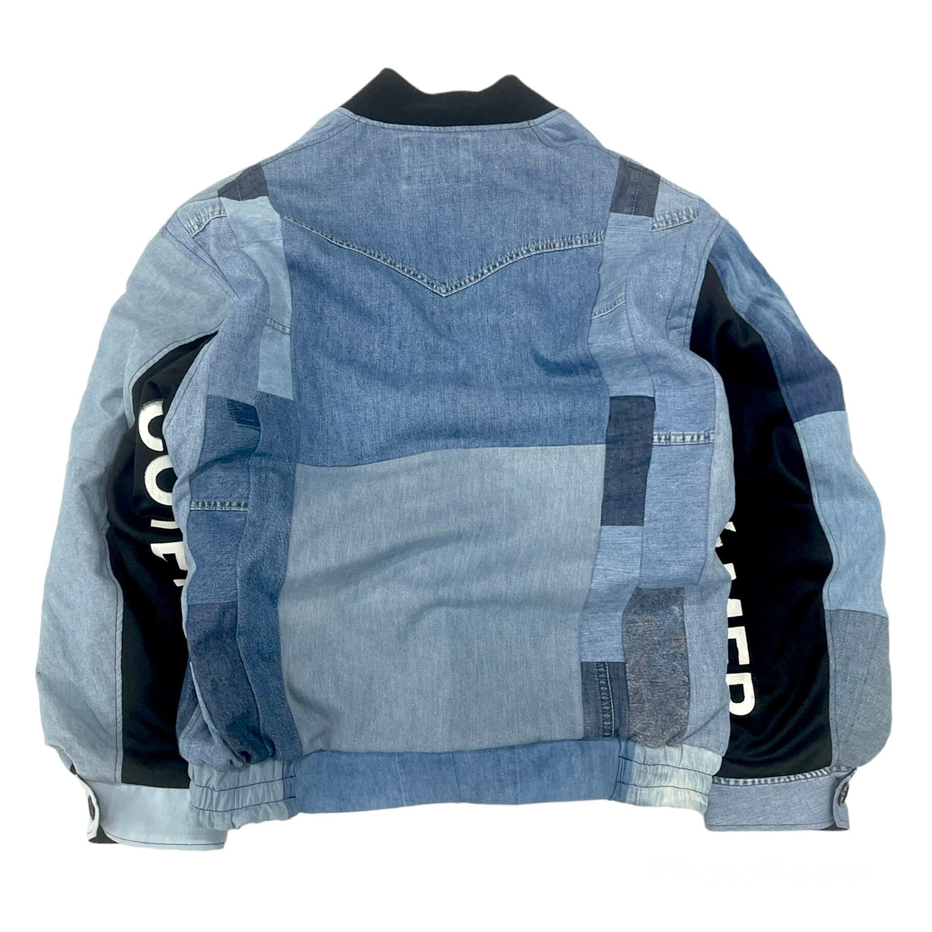 オモテは複数のデニムシャツを解体し、再構築。ウラはヴィンテージの着物を使用しています。