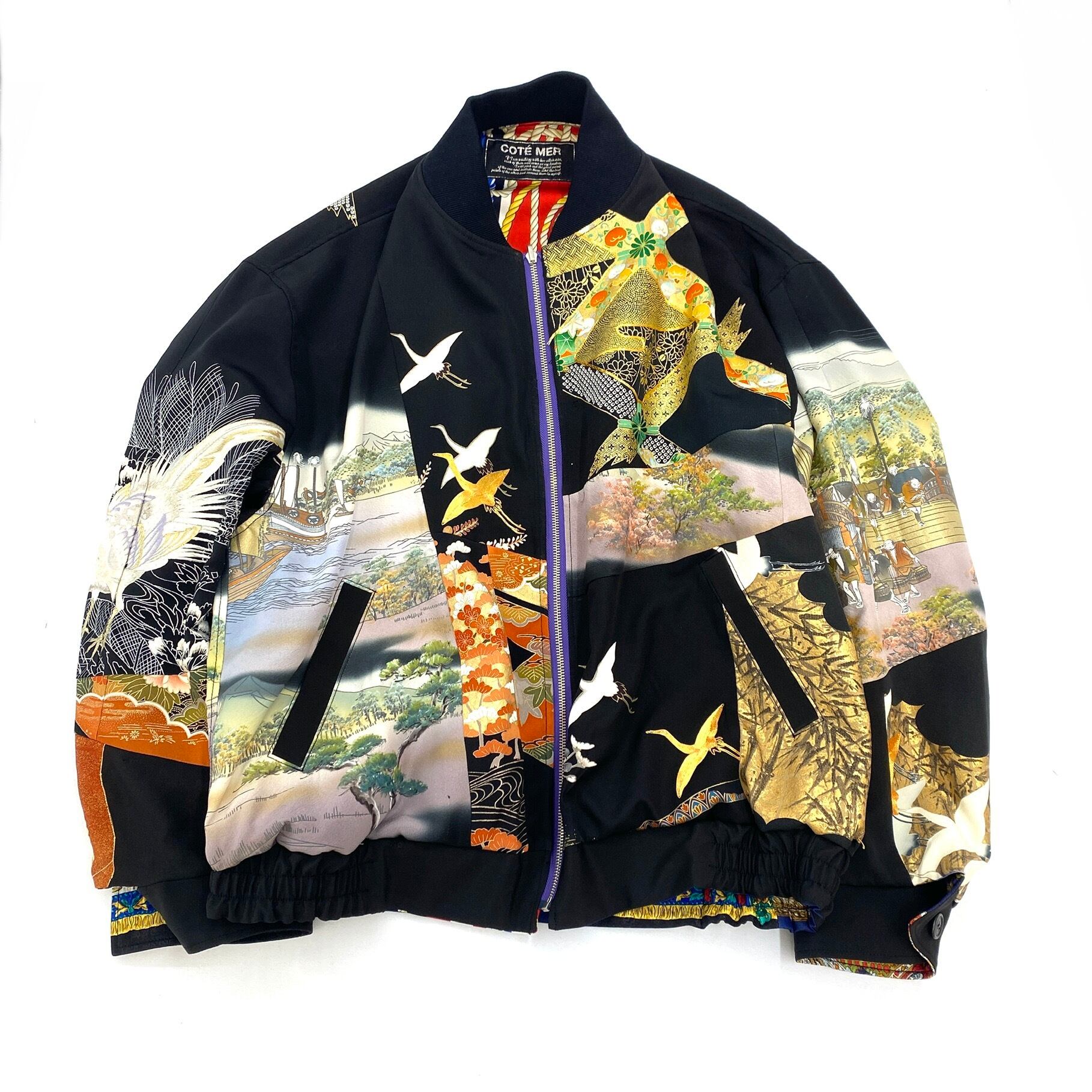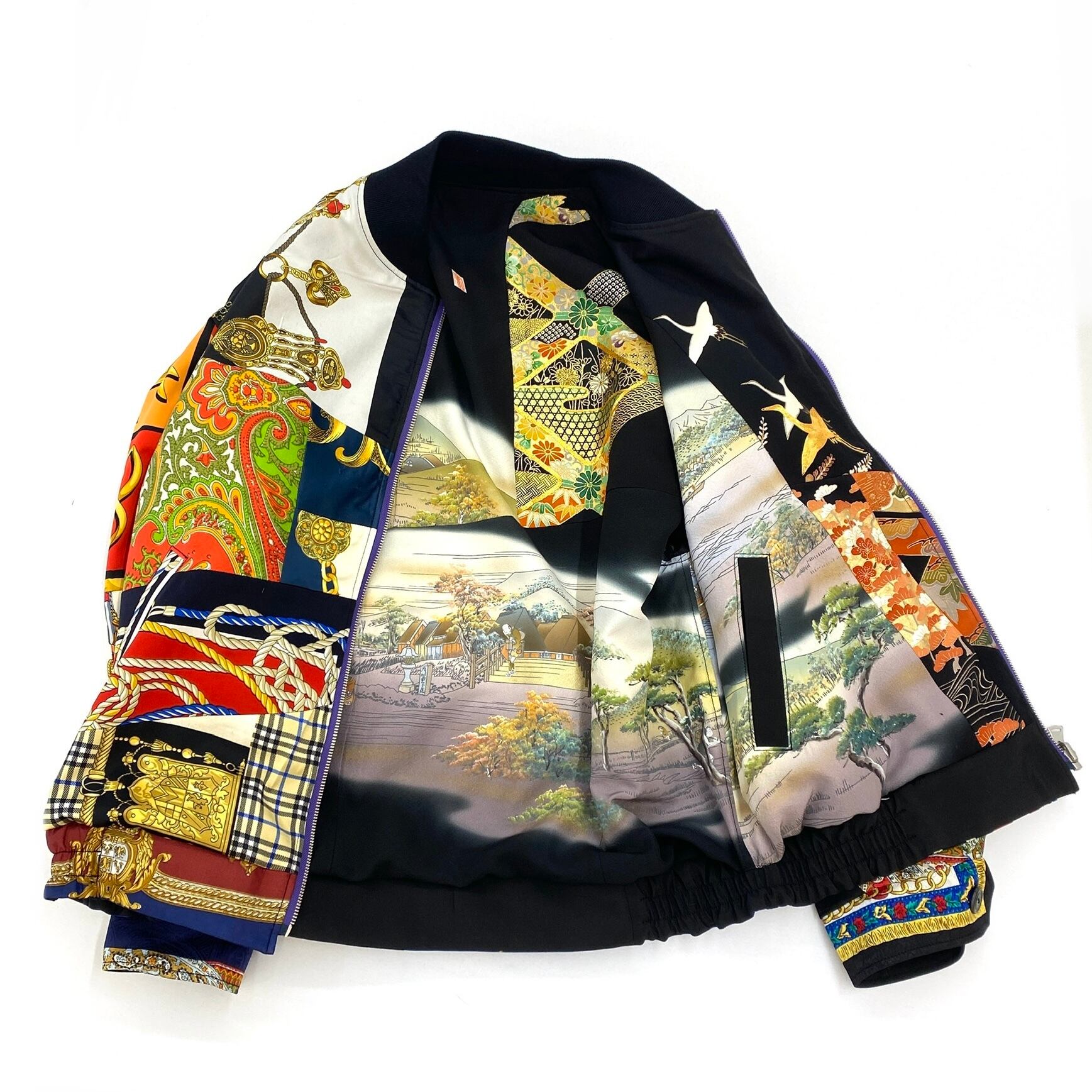 【bomber40】再構築リバーシブルボンバー Kimono×vintage scarf MIX BOMBER reversible JACKET