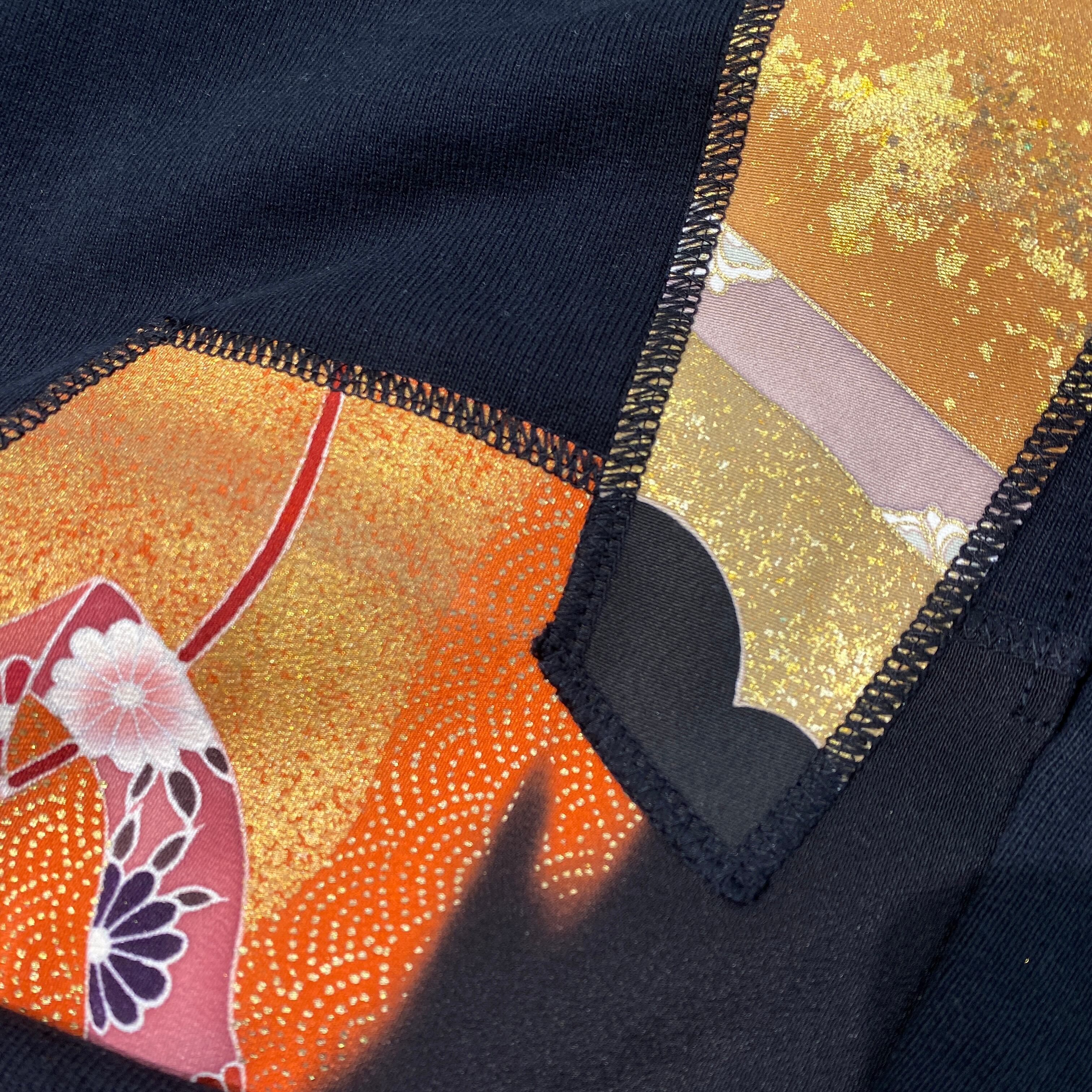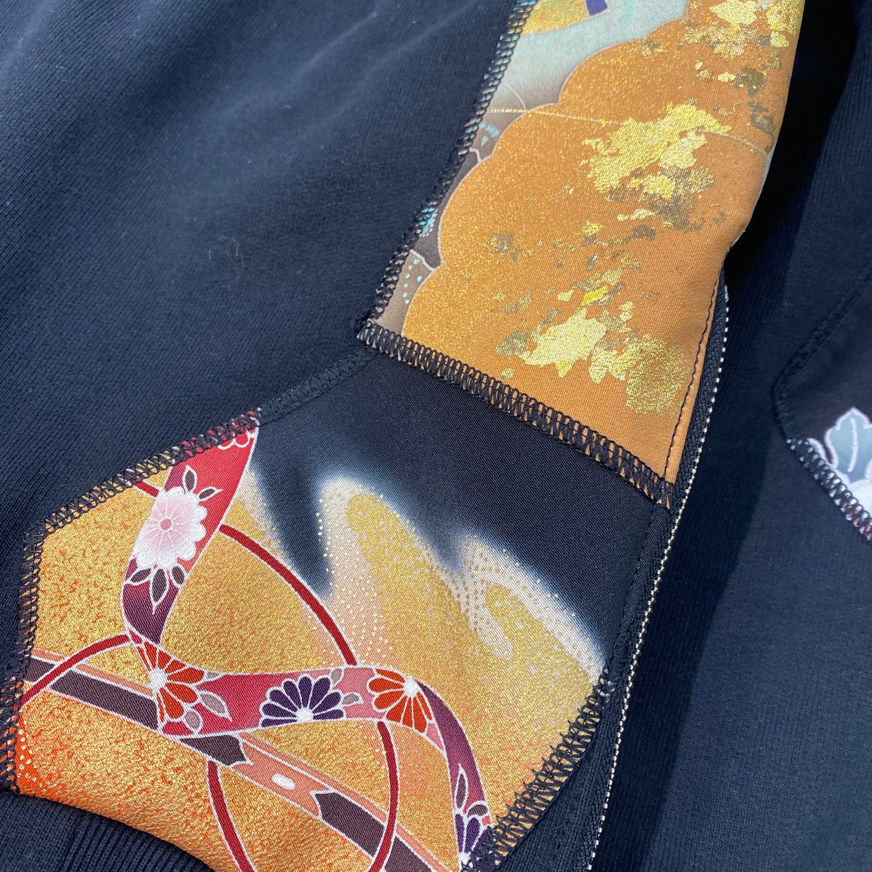 【hoodi46】 Remake Hoodie black × kimono