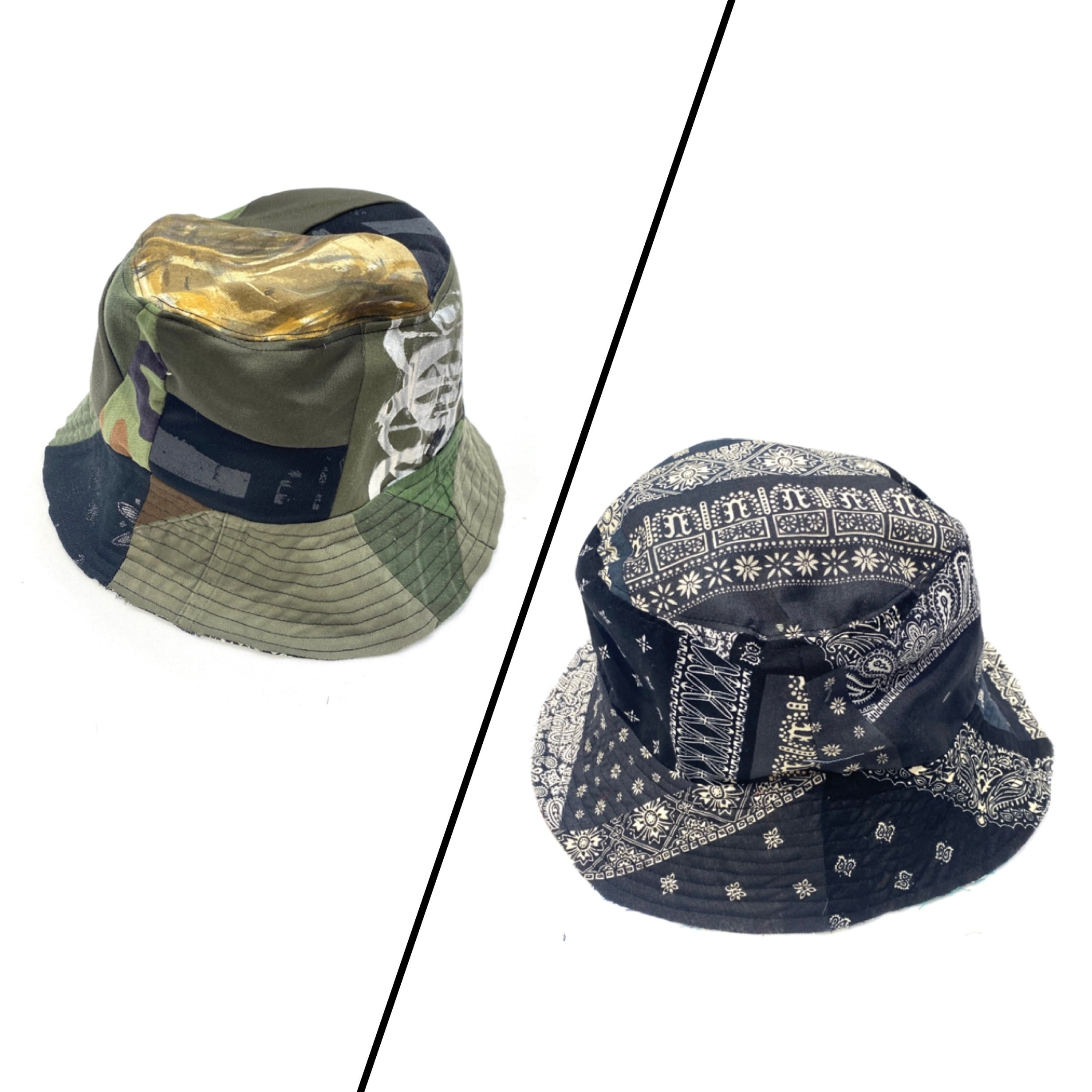 This is COTEMER's original bucket hat, featuring a reversible design with military fabric on one side and a random-cut bandana pattern on the other. You can enjoy your favorite side according to your mood.