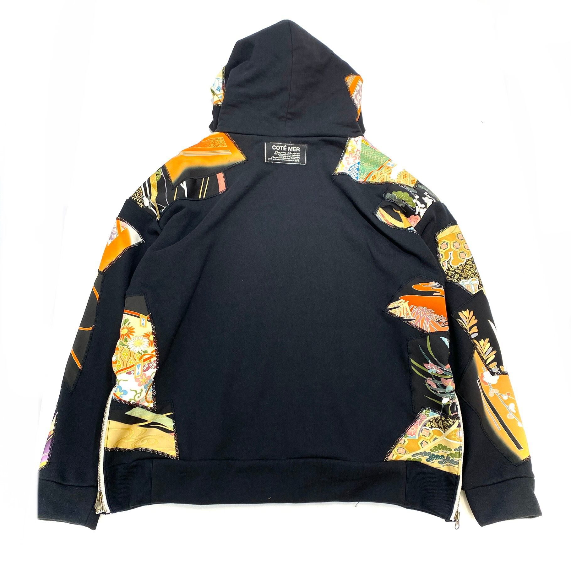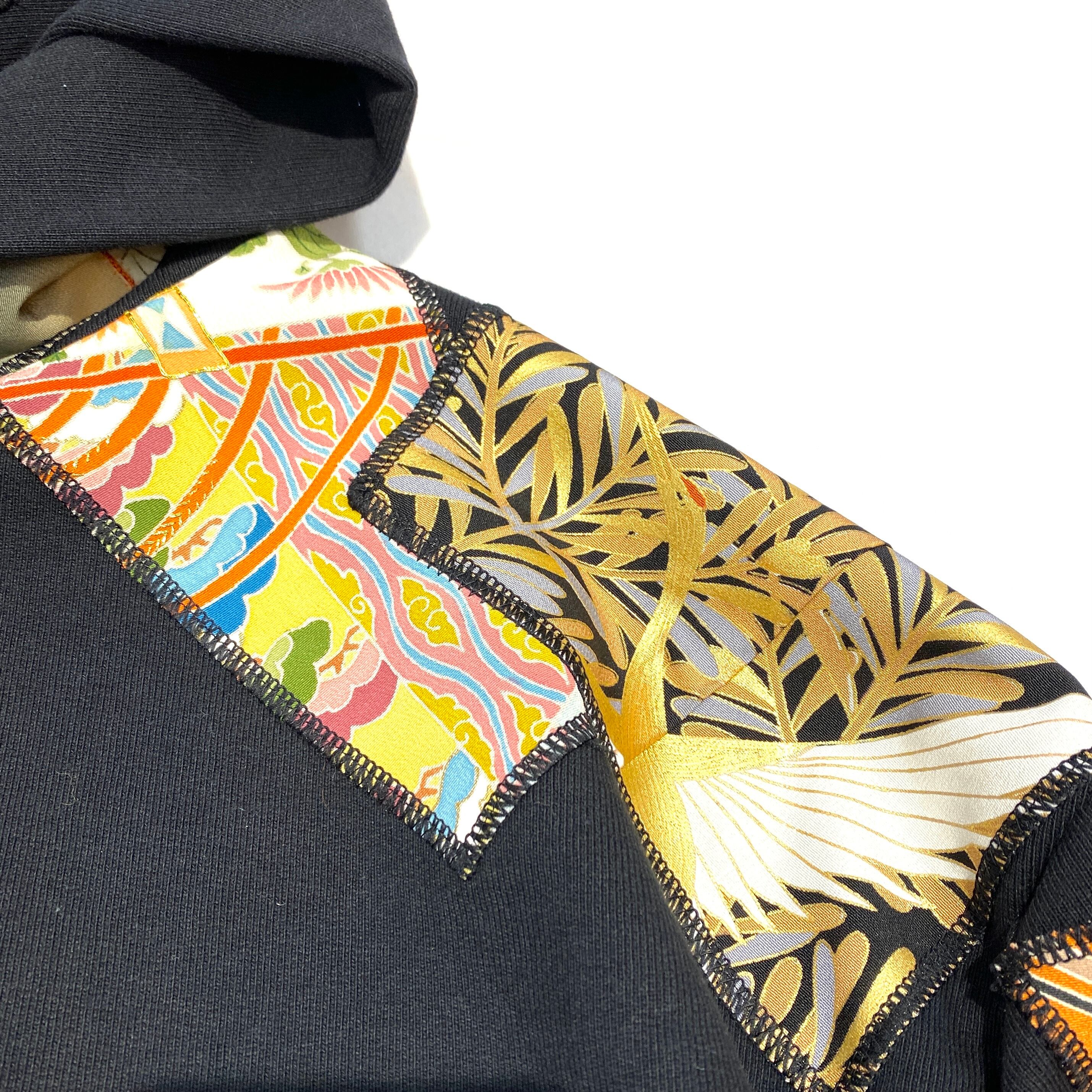 【hoodi59】 Remake Hoodie black × kimono