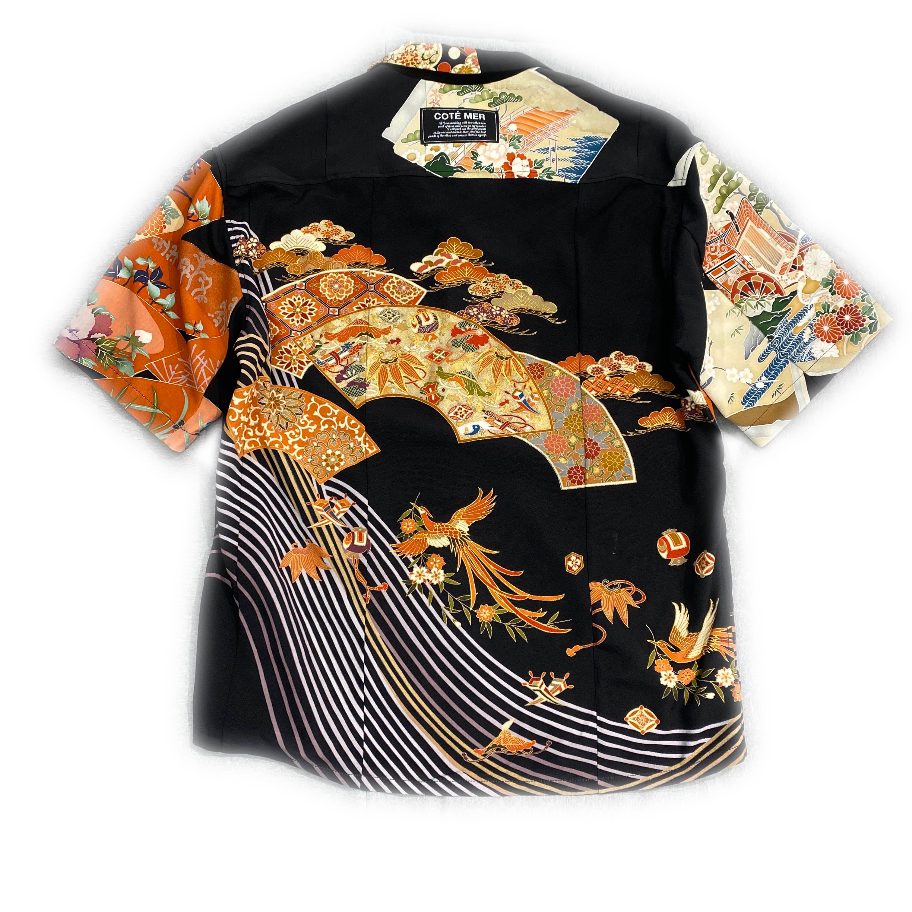 A shirt using the iconic Japanese kimono, incorporating multiple kimonos.