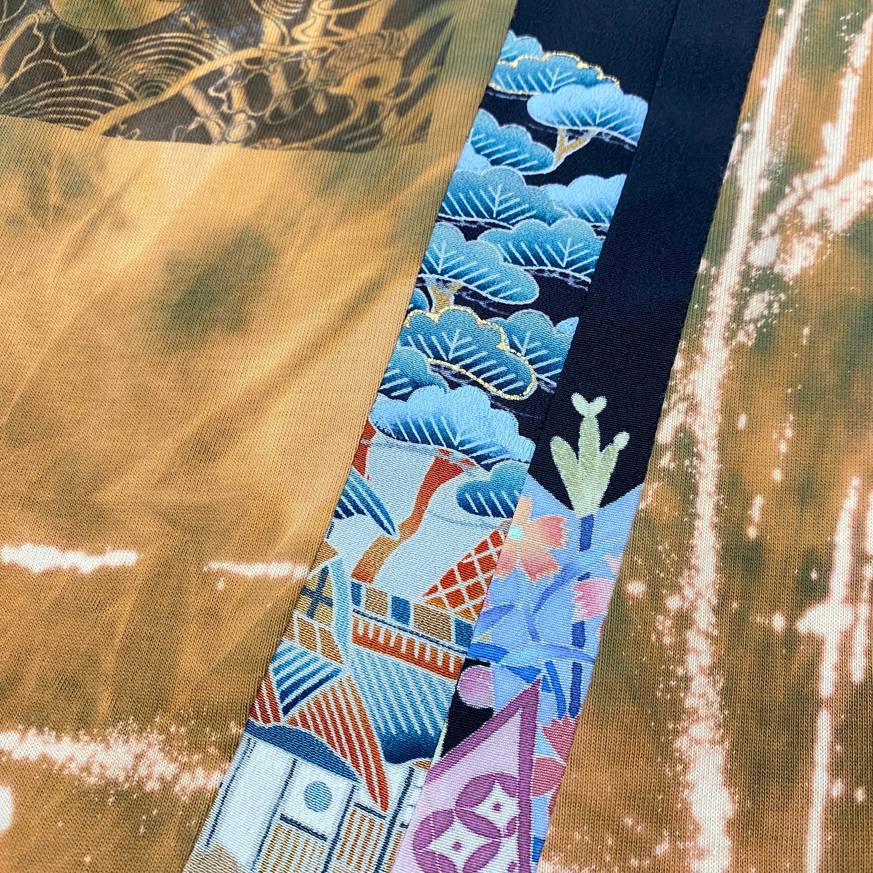 Our product features the use of Nishijin weaving from Kyoto for the kimono material, which maximizes the appeal of Japan's traditional and historic charm and transforms it into a modern item. It's a versatile piece that can be worn in both street and mode fashion, and is perfect for those who want to express their individuality and avoid being like everyone else.