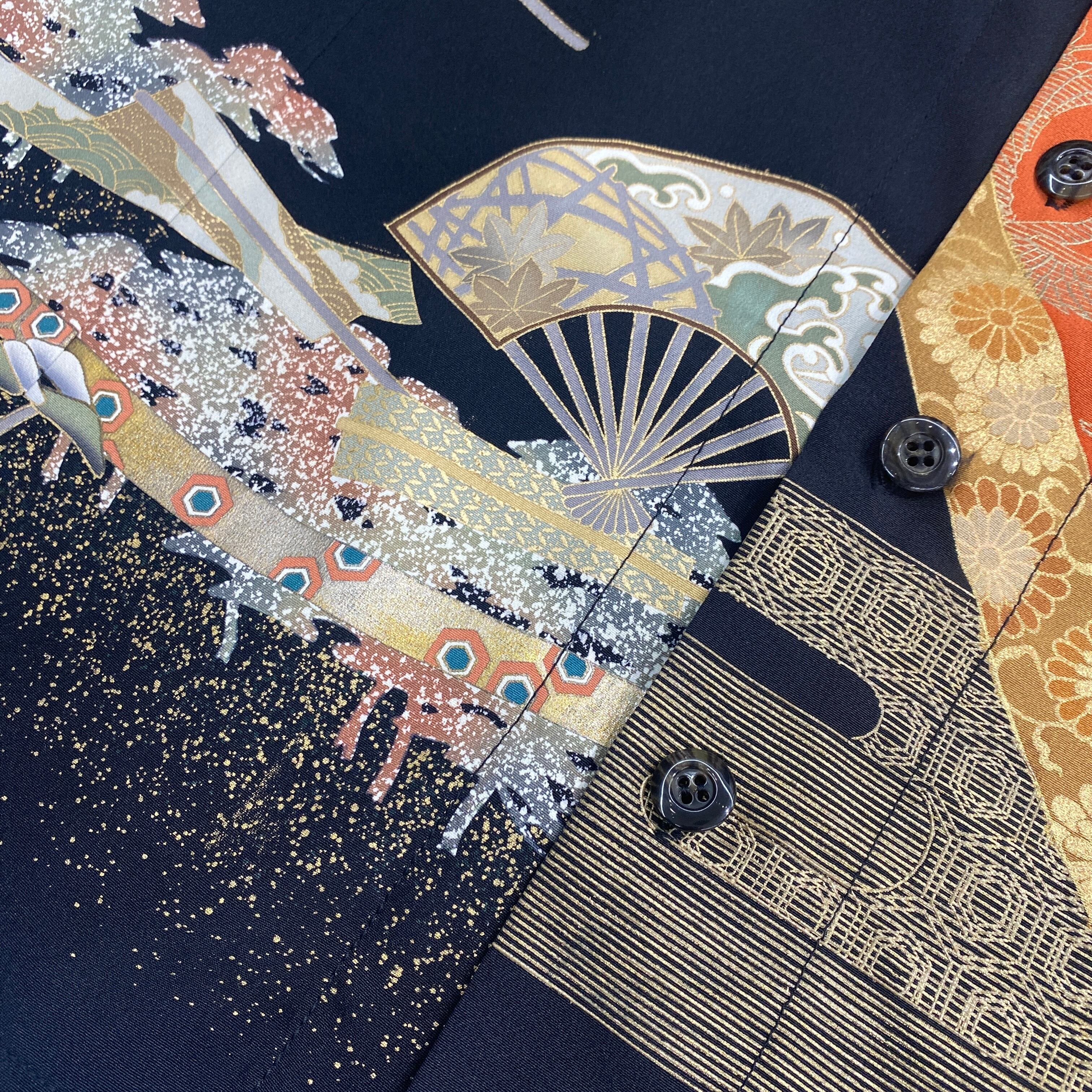A shirt using the iconic Japanese kimono, incorporating multiple kimonos.