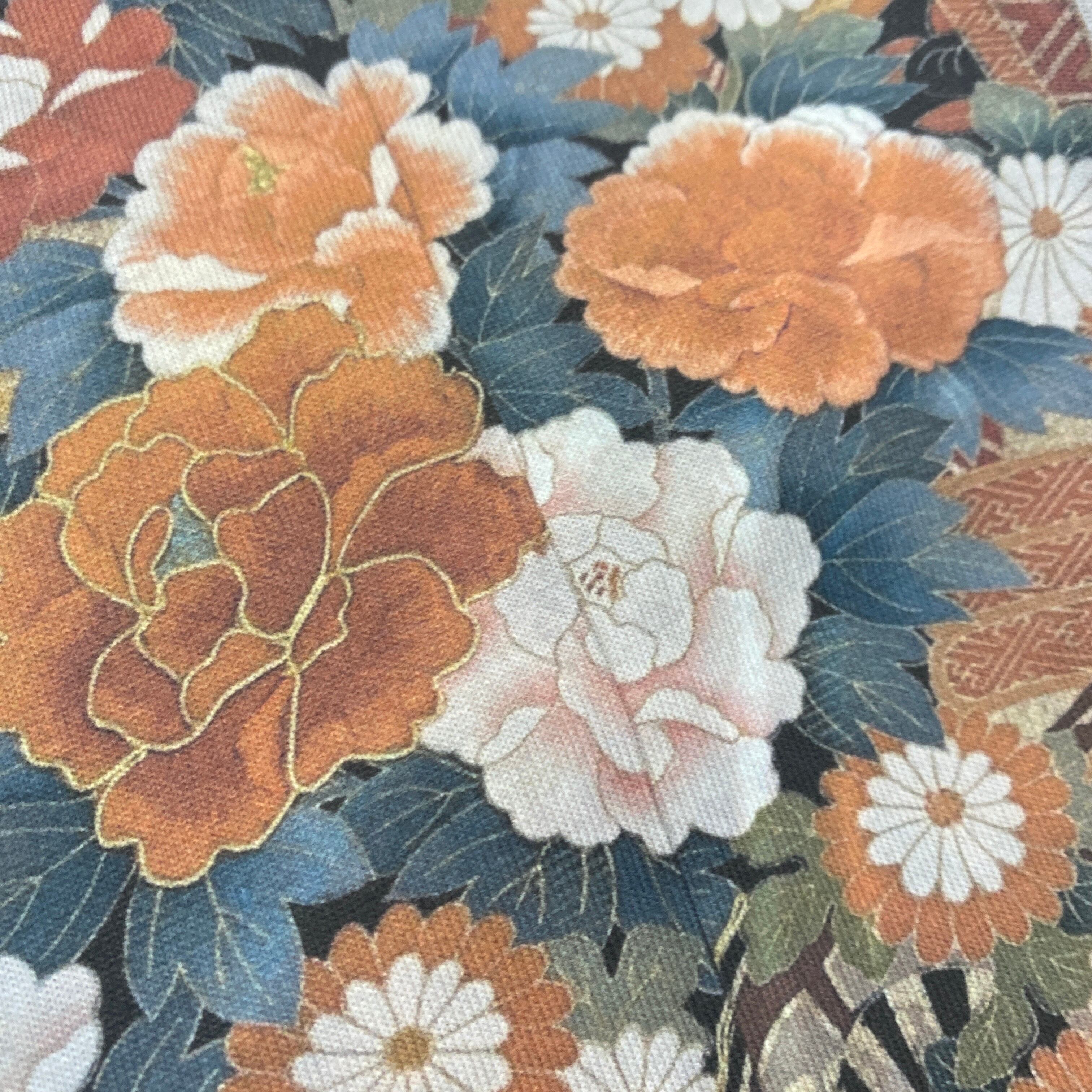 We maximize the appeal of materials that evoke the charm of Japan's old-fashioned history and traditions and transform them into contemporary items. This special piece features a large print of traditional Japanese kimono patterns and representative ukiyo-e prints. The arrangement of the patterns is unique for each item.