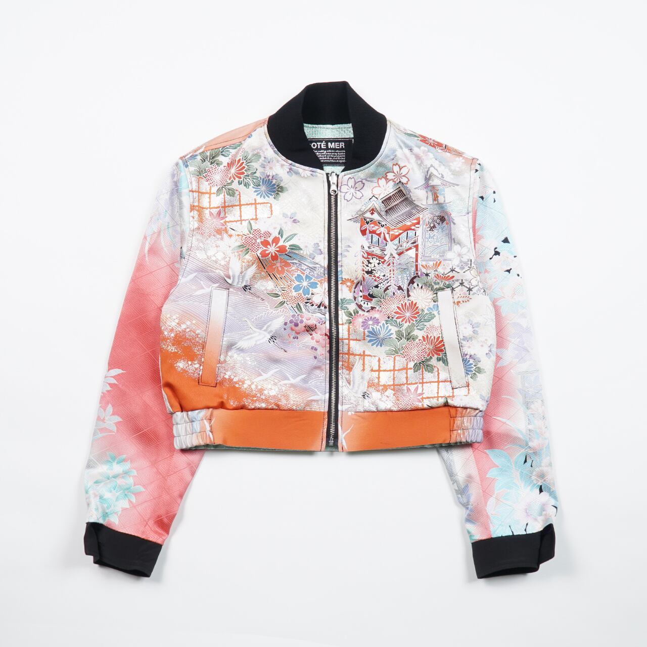 This is a reversible bomber jacket that uses a kimono fabric that symbolizes Japan. It looks great whether you wear it inside out or outside in.