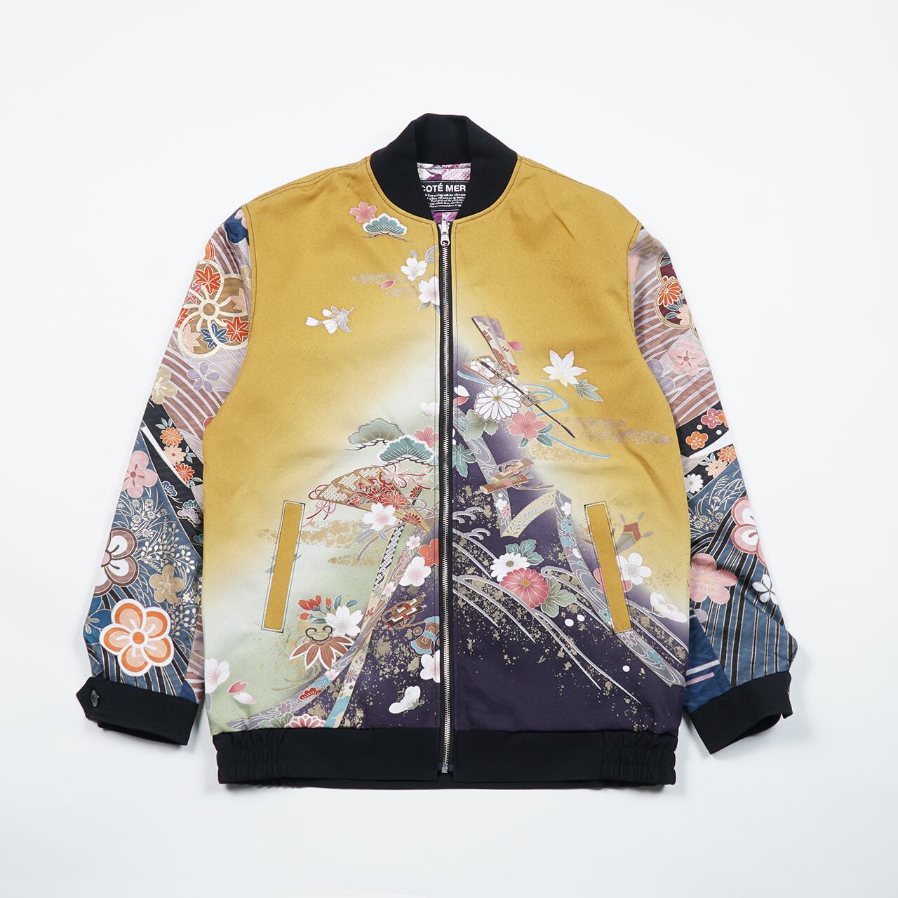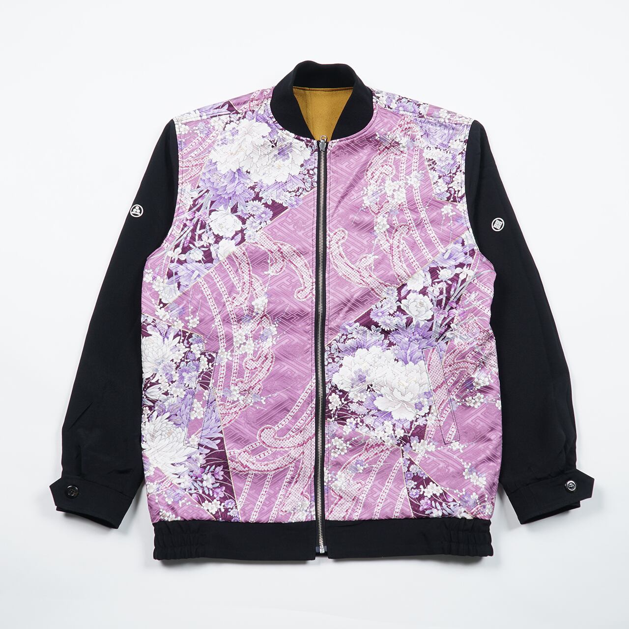 This is a reversible bomber jacket that uses a kimono fabric that symbolizes Japan. It looks great whether you wear it inside out or outside in.