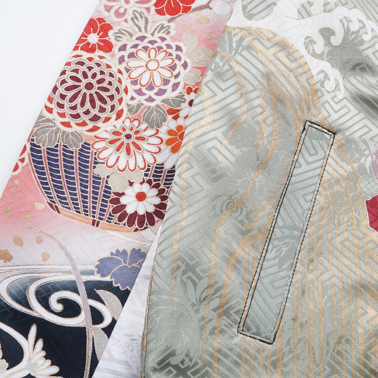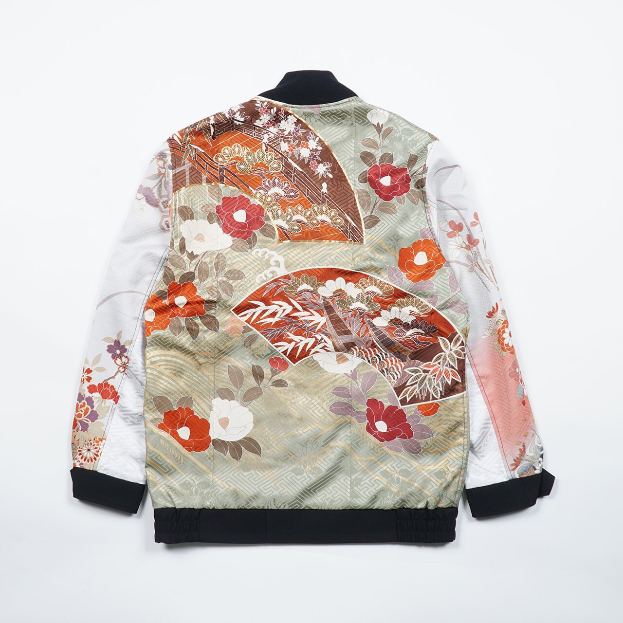 日本を象徴する着物を使用しているリバーシブルボンバージャケット。表面と裏面、どちらで着ても雰囲気抜群です。