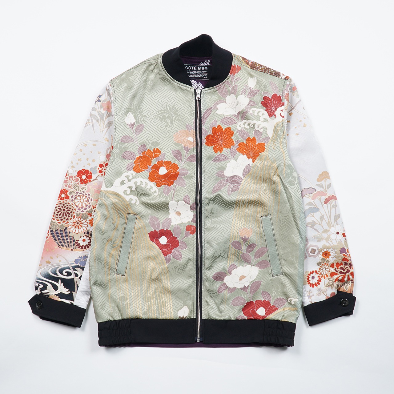 This is a reversible bomber jacket that uses a kimono fabric that symbolizes Japan. It looks great whether you wear it inside out or outside in.