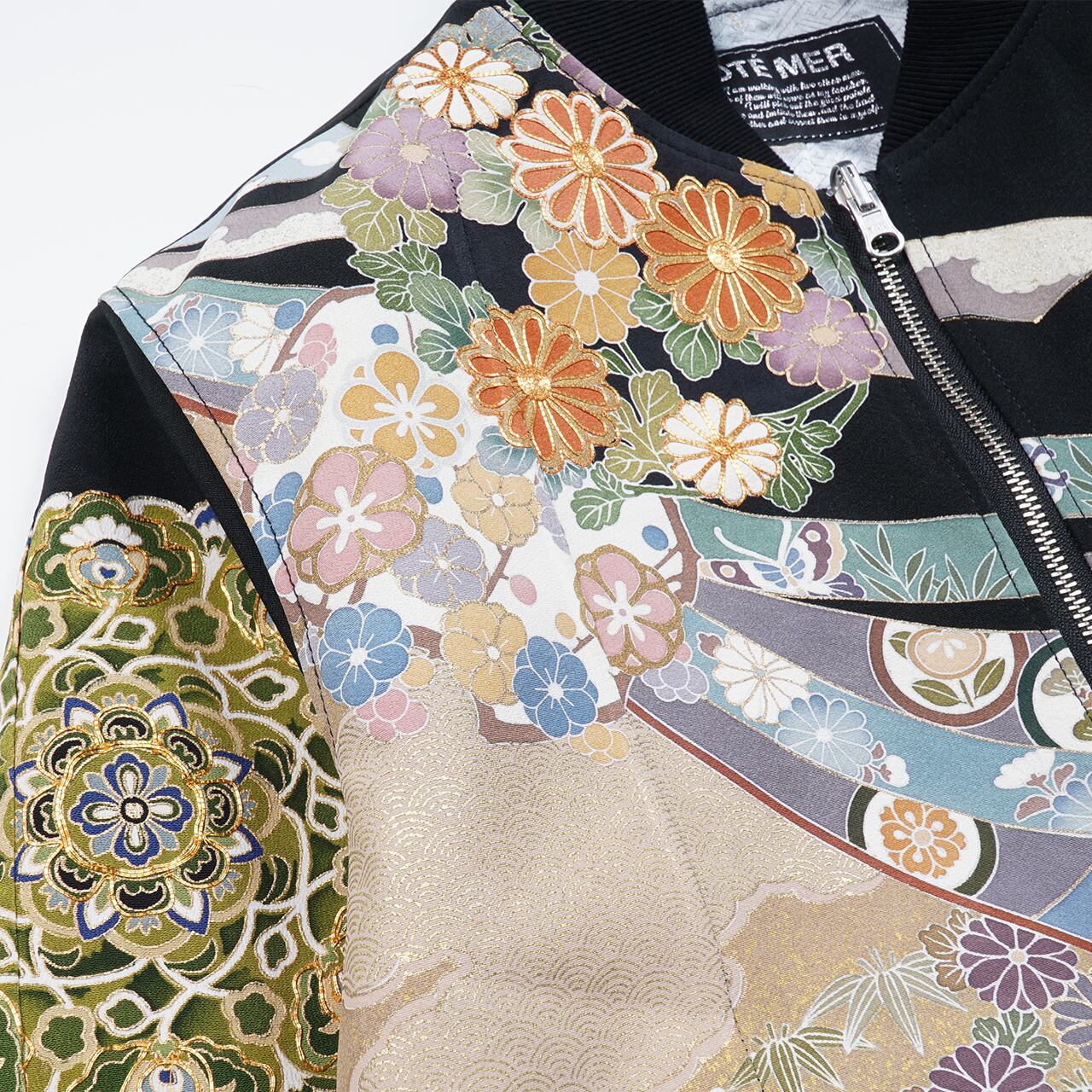 日本を象徴する着物を使用しているリバーシブルボンバージャケット。表面と裏面、どちらで着ても雰囲気抜群です。