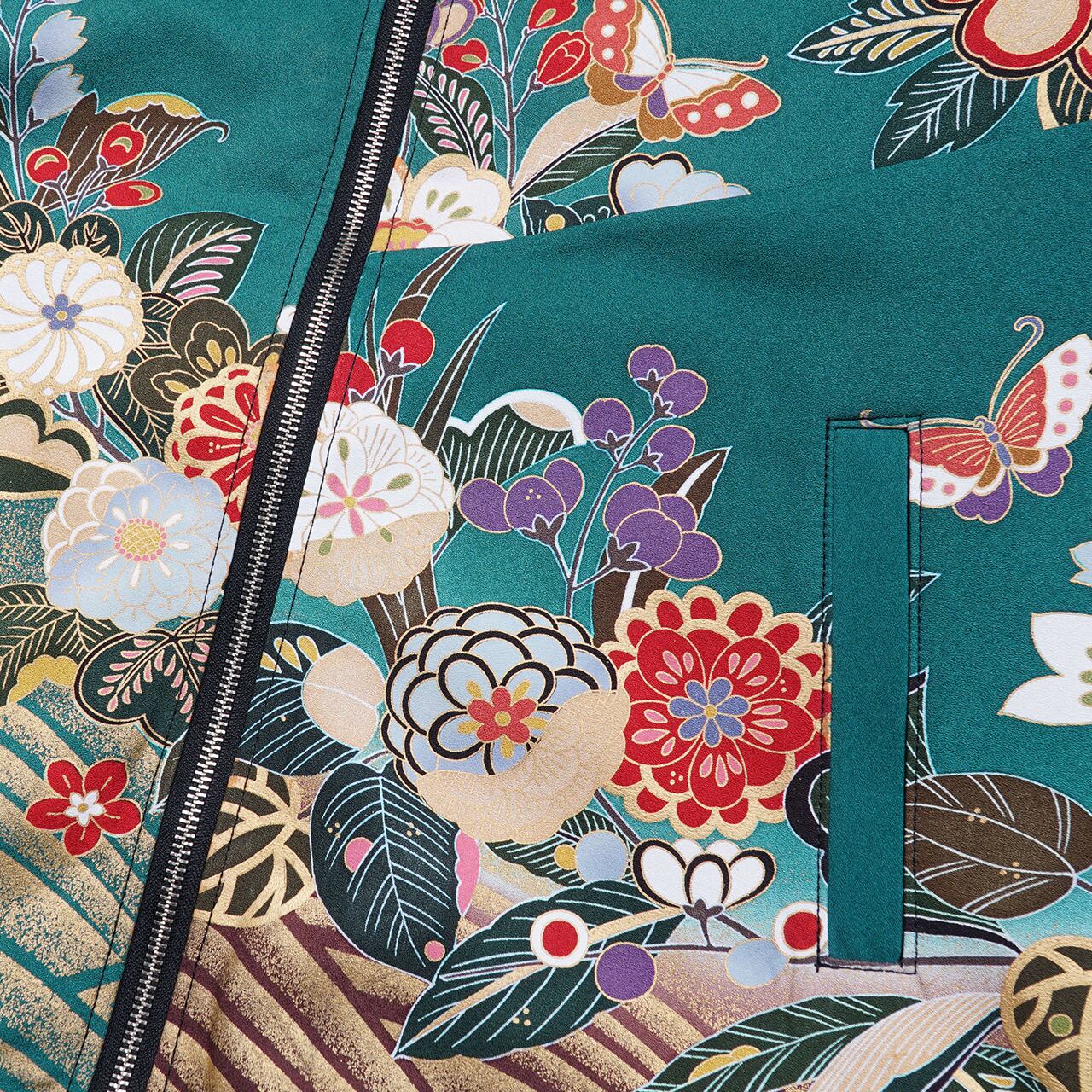 日本を象徴する着物を使用しているリバーシブルボンバージャケット。表面と裏面、どちらで着ても雰囲気抜群です。