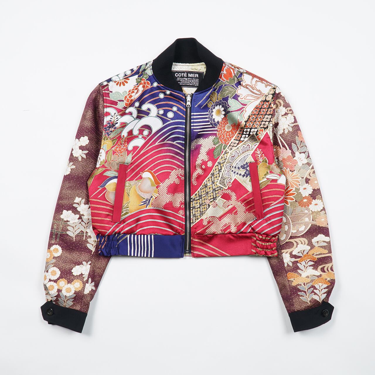 This is a reversible bomber jacket that uses a kimono fabric that symbolizes Japan. It looks great whether you wear it inside out or outside in.
