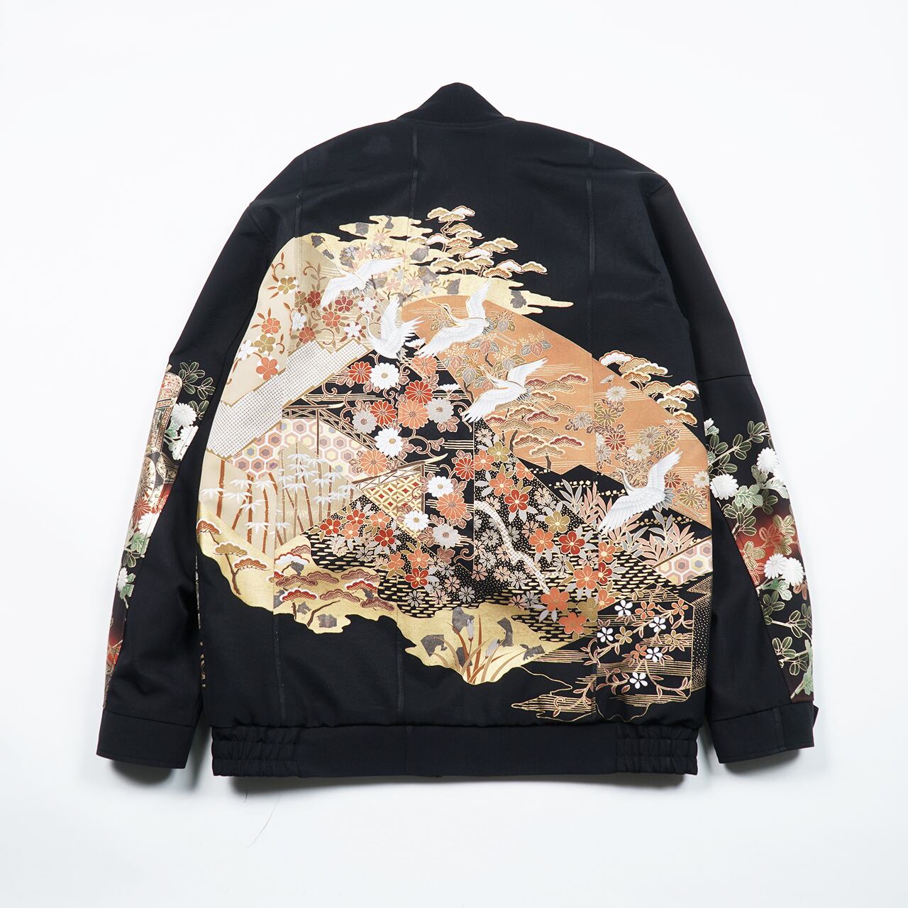 日本を象徴する着物を使用しているリバーシブルボンバージャケット。表面と裏面、どちらで着ても雰囲気抜群です。