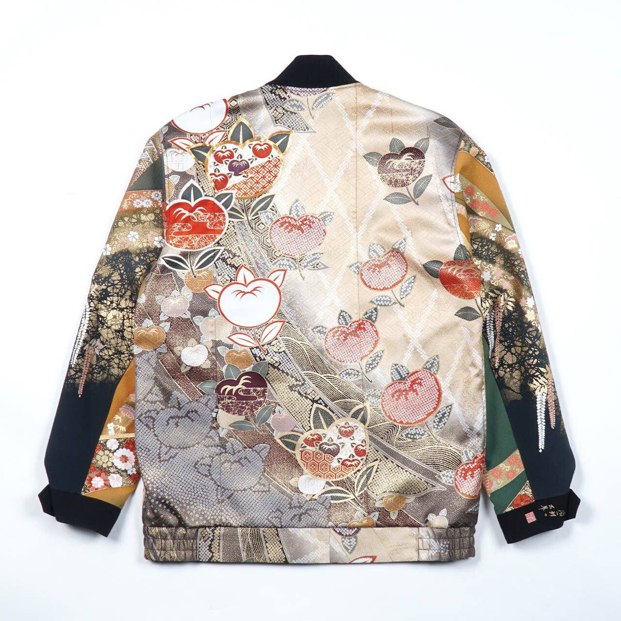 日本を象徴する着物を使用しているリバーシブルボンバージャケット。表面と裏面、どちらで着ても雰囲気抜群です。