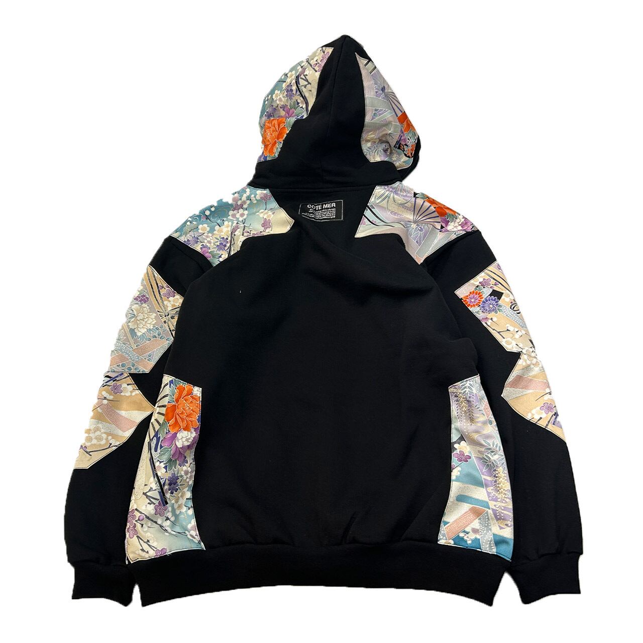 We transform the charm of materials that evoke Japan's rich history and traditions into contemporary items. This piece is redesigned using vintage kimono, a symbol of Japan, and features it as a striking design on the front. Perfect for those who want to express their individuality and stand out, this item can be styled effortlessly in a streetwear fashion.